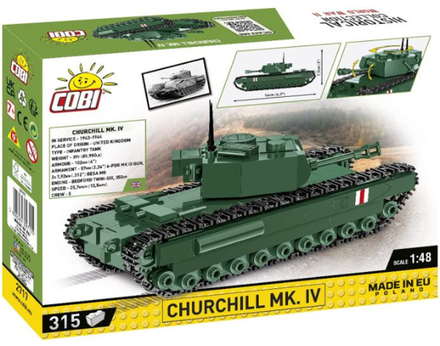 The Churchill MK IV is a British heavy infantry tank from World War II. It became one of the most recognizable Allied vehicles during the war. Produced in the years 1941-1945, it was modified many times, and many special vehicles were created on its basic design. It had a very successful service life with the British and its allies during WW2, despite the troubles it faced during development and the early production variants. Valued for its strong armour, low silhouette and mobility in difficult terrain. The MK. IV was equipped with a six-pounder (57 mm) gun, although in North Africa around 210 were retrofitted with American 75mm guns instead, taken from damaged or destroyed Sherman tanks, these are known as Churchill NA75's. The Churchill was used in the fighting in North Africa, Italy and Western Europe. 1,622 Mk.IV's were produced making it the most numerous variant of the vehicle.
