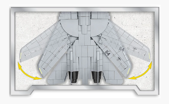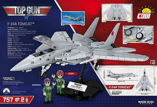 The model was faithfully reproduced from 757 COBI construction blocks and includes high-quality prints faithfully reproducing the original markings of the movie aircraft. The model is equipped with movable wings with variable geometry, retractable landing gears and rotating wheels. There is a large arsenal of weapons under the wings.