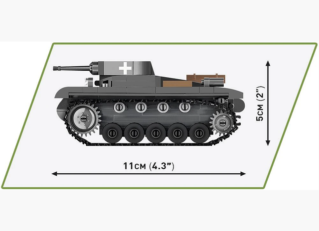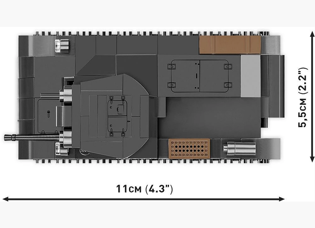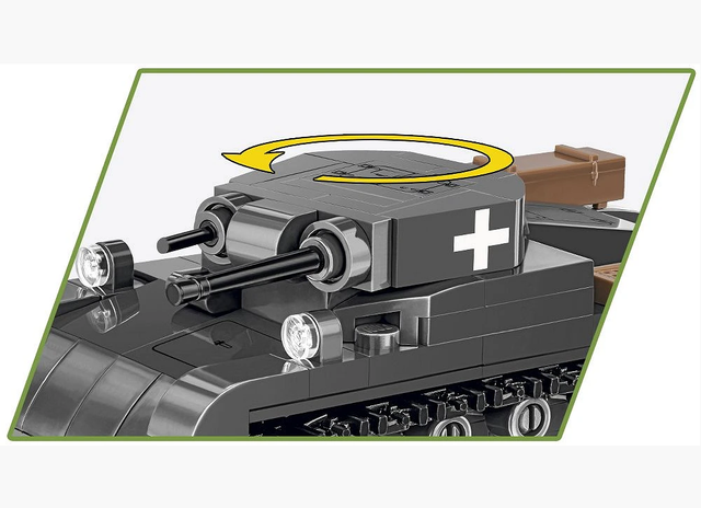 A miniature vehicle made of COBI construction blocks was produced in the completely new 1:48 scale. The tank comes with elements of the environment in the form of block vegetation, so sought after by fans of blocks! The set is easy to build, so it's perfect for the beginning of the adventure with Polish COBI construction blocks. It has a movable cannon, a rotating turret and working caterpillar traction. All graphic details are high-quality prints
