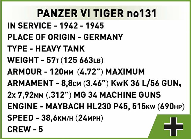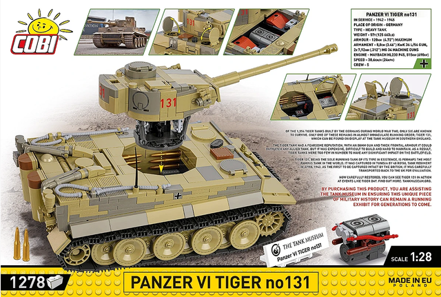 Panzer VI Tiger ""131"" from COBI is a unique set that allows you to create a realistic model of one of the most famous tanks in the world!