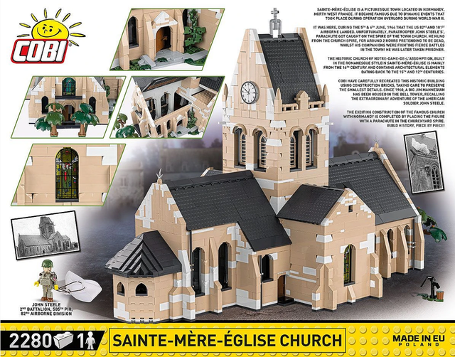 The church of Notre-Dame-de-l'Assomption in Sainte-Mère-Église (Normandy, France) gained world-wide fame thanks to the events of June 6, 1944, which took place during the D-Day operation. Soldiers of the American 82nd Airborne Division were tasked with gaining control of the town of Sainte-Mère-Église. However, due to an unfortunate landing, one of the soldiers, John Steele, became stuck on the church tower. Suspended high above the ground, the helpless soldier witnessed fierce fighting in the city. He survived but was injured himself.
