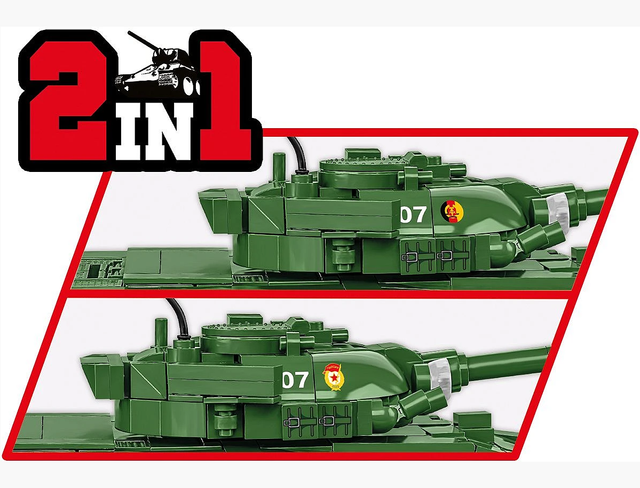 Using COBI construction blocks you can build a main battle tank from the times of the Warsaw Pact, when Europe was divided by the Iron Curtain! The T-72 M1 tank set includes a double set of markings for East Germany and the USSR. East Germany purchased over 500 tanks of this type from the USSR, Poland and Czechoslovakia. After German reunification in the 1990s, the tanks were withdrawn from service. In the USSR, the tank entered service in 1971. Thanks to numerous modifications the tank is still in use in modern Russia.