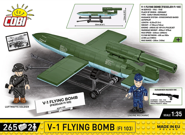 • Scale 1:35 – Precise reproduction of the V-1 rocket, retaining the characteristic pulse engine and aerodynamic wings.
